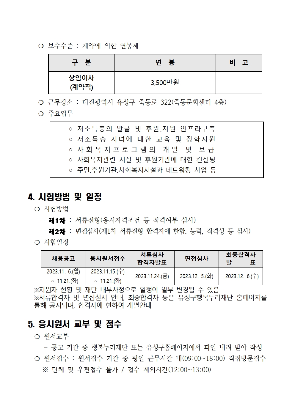 2023년 유성구행복누리재단 직원(대리) 채용 재공고