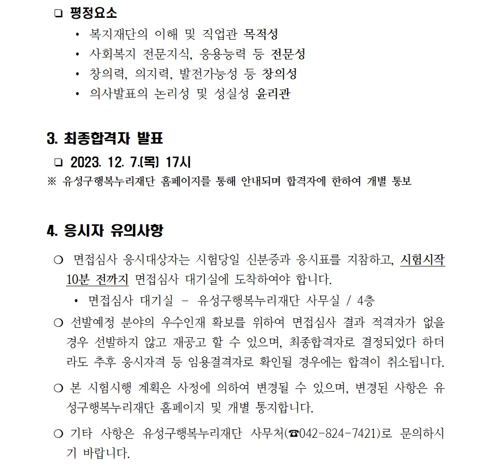 (재)대전광역시 유성구행복누리재단 대리(3급) 최종합격자 공고