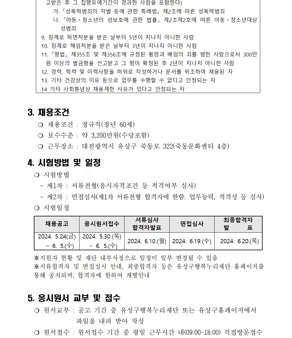 (재)대전광역시 유성구행복누리재단 직원(4급) 채용 공고